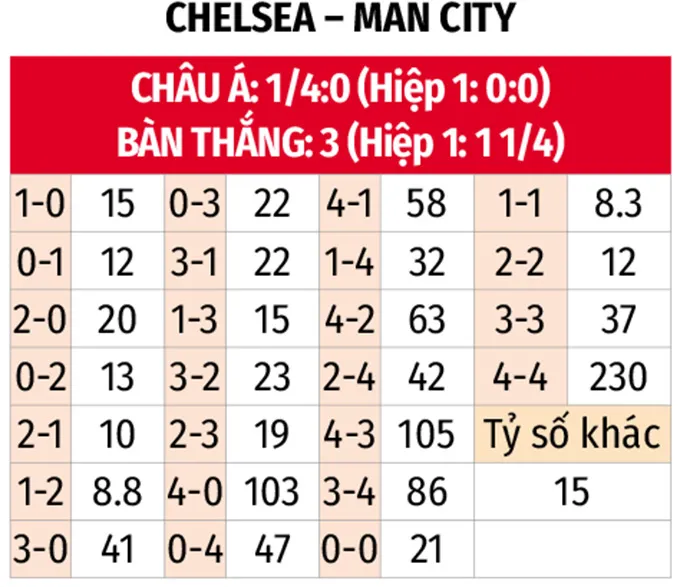 - Bàn thắng sớm ở hiệp 1: 8/9 lần gặp nhau gần đây đều chứng kiến bàn thắng trong hiệp một, với 4 trận có từ 2 bàn trở lên. Xu hướng này phù hợp với phong độ tấn công của cả hai: 6/8 trận gần của Chelsea và 5/6 trận vừa qua của Man City đều có tối thiểu 2 bàn trước giờ nghỉ.