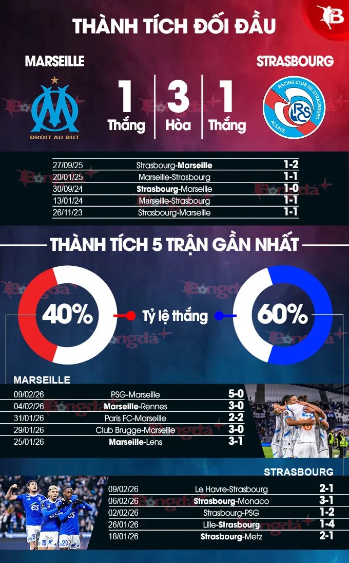 - Cả hai cùng ghi bàn: Đây là kịch bản phổ biến khi hai đội gặp nhau (7/10 lần gần nhất). Strasbourg ghi bàn ở 8/9 trận gần đây, còn Marseille luôn có bàn thắng tại sân nhà trong 6/8 trận vừa qua.