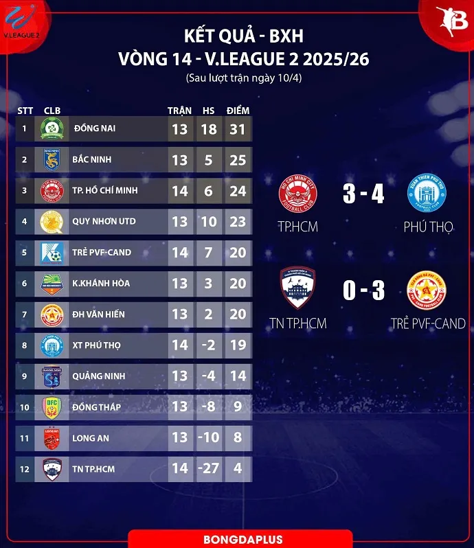 Vòng đấu thứ 14 của giải hạng Nhất Quốc gia 2025/26 đã chứng kiến một kịch bản bất ngờ khi hàng loạt đội chủ nhà phải nhận thất bại. Trong đó, trận thua đầy tiếc nuối của TP.HCM FC trước Phú Thọ đã thu hút sự chú ý lớn.